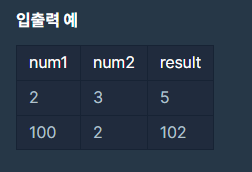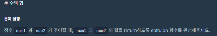 변수 num1 과 num2 가 주어졌을때 그들의 합을 반환시키는 문제입니다.