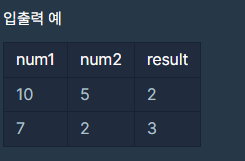 변수 num1, num2가 주어질때 num1과 num2를 나눈 몫을 반환하는 문제입니다.