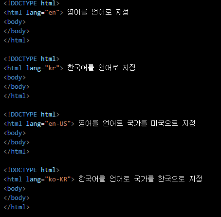 추가로 국가코드는 lang속성의 언어 코드에 추가할 수도 있습니다.