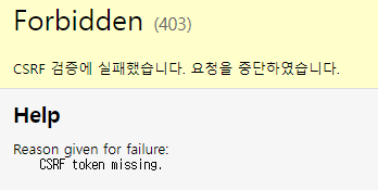 이렇게 csrf검증에 실패했다는 화면이 나올겁니다.