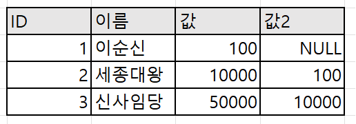 이렇게 값2 라는 열이 추가 되며 (값) 이전의 값을 반환하여 생성합니다.
